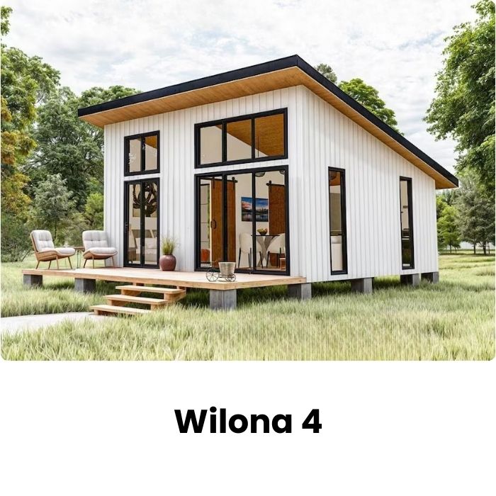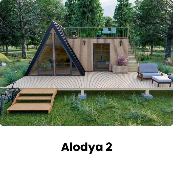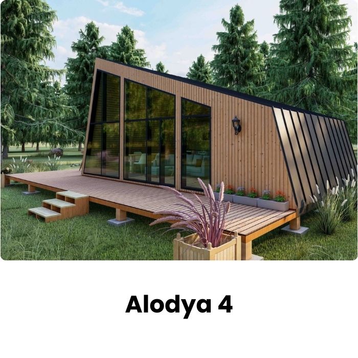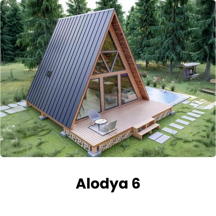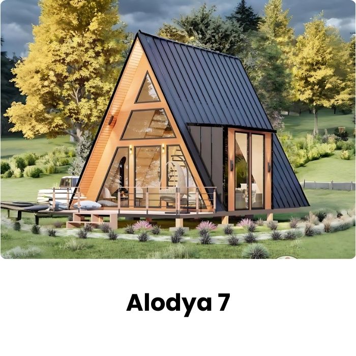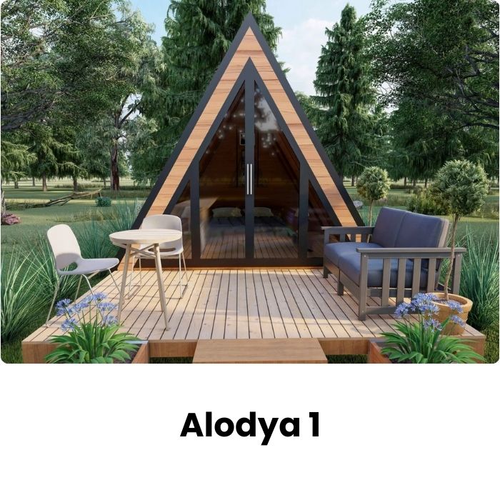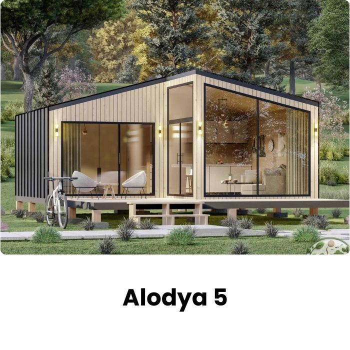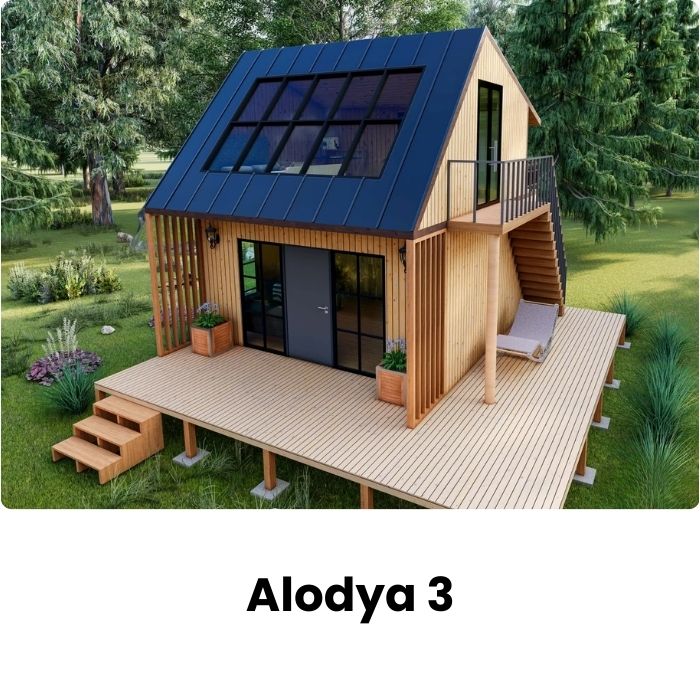Rumah kayu (cabin woods) yang bernuansa alam dengan struktur baja yang kuat dan panel yang ringan