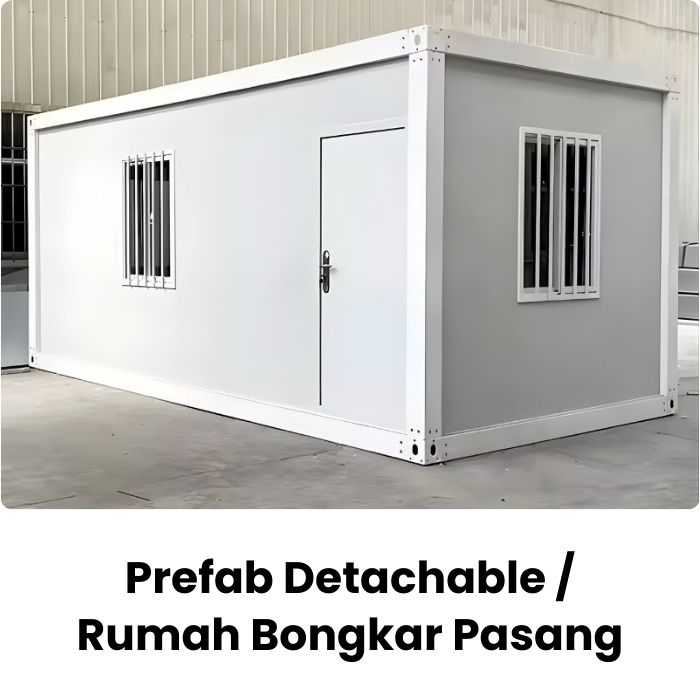 Bangunan prefab yang dirancang dengan sistem detachable, mudah dibongkar-pasang, efisien untuk pengiriman dan instalasi ulang. Cocok untuk kebutuhan hunian atau fasilitas sementara yang fleksibel